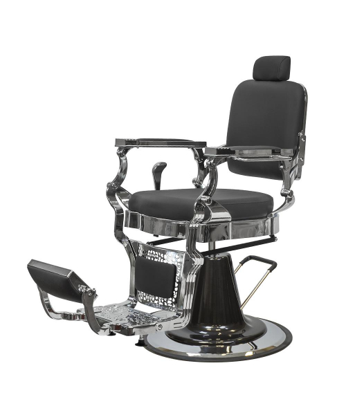 Мужской салон – место с повышенной нагрузкой, поэтому оборудование выполнено из надежных и прочных материалов. Каркас кресла в барбершоп изготовлен из прочной стали и установлен на круглое устойчивое основание. По краю основания есть резиновая накладка, предотвращающая скольжение мебели и царапины на полу. Наполнитель – эластичный поролон. В качестве обивки использована экокожа. Материал не впитывает влагу и загрязнения, не деформируется при использовании моющих и дезинфицирующих средств. Декоративные накладки на подлокотниках и подставке для ног из экокожи гармонично дополняют общий дизайн мебели в барбершоп.