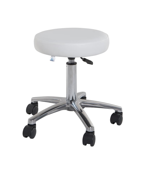 Стул для мастера без спинки с сидением круглой формы, обивка из искусственной кожи устойчива к моющим и дезинфицирующим средствам. На выбор представлен большой ассортимент цветов обивки. Легкий в передвижении. Пневматическая регулировка высоты. Габариты: 35(Ш) x 10(В) x 35(Г)