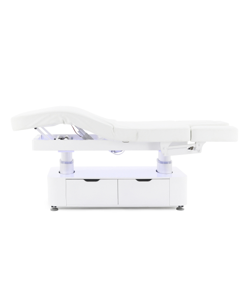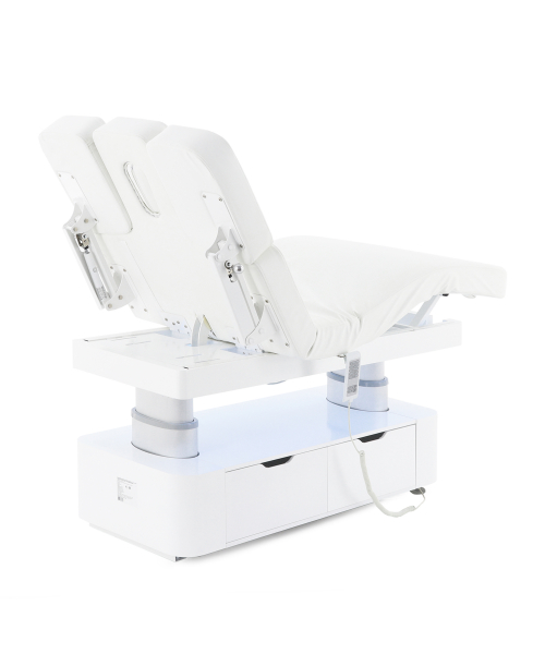 Стол изготовлен с учётом всех потребностей современной индустрии красоты. Мягкое и комфортное ложе имеет несколько секций и 4 мотора для плавной регулировки высоты и угла наклона подвижных частей. Рама изделия выполнена из стали высокой прочности и выдерживает нагрузку до 150 кг, что гарантирует долгий срок службы оборудования.