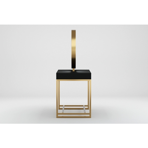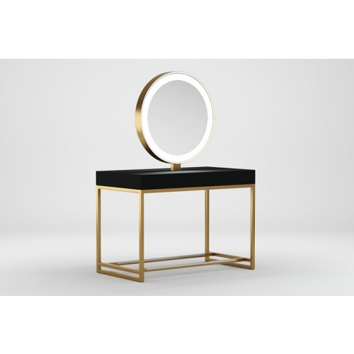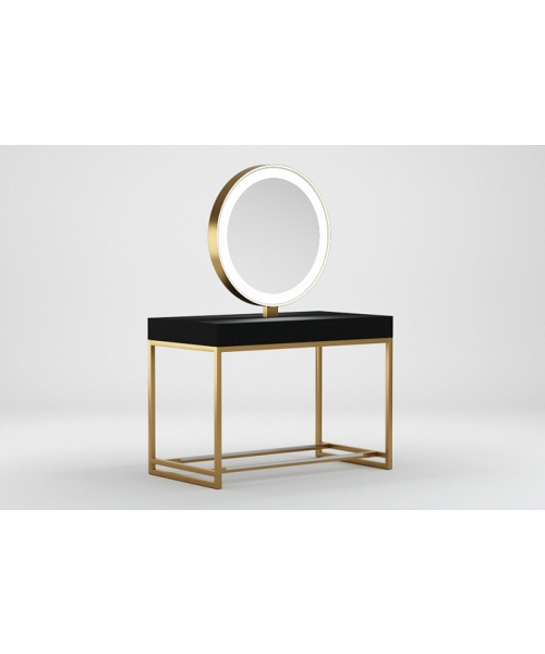 Зеркальное полотно в форме идеального круга с декоративной подсветкой, надёжная порошковая покраска, устойчивая к образованию ржавчины, вместительная столешница для инструментов, мощные металлические подножки с накладками из нержавеющей стали и максимально устойчивые опоры. Уникальное сочетание утонченного дизайна и безукоризненного качества исполнения.