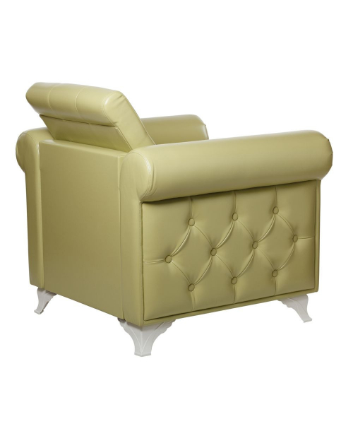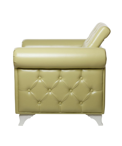 Декоративные пуговицы украшают внутреннюю часть спинки, внешние части подлокотников и переднюю панель в нижней части кресла.