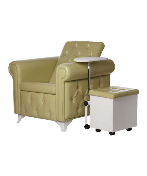 Комфортабельное педикюрное кресло с мягкими широкими подлокотниками и удобной спинкой.