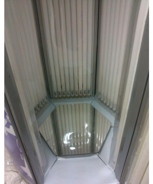 54 лампы по 200W; мощность 10800 W; размеры: высота 242 см, диаметр наружный 130 см, диаметр внутренний 78 см, глубина с открытой дверью 170 см; пульт администратора (3 счетчика), который позволяет контролировать работу солярия с ресепшена вашего салона; сенсорный пульт клиента. Удобное управление функциями солярия внутри кабины. Регулировка мощности вентилятора, громкости музыки и голосового сопровождения; проигрыватель МР3 с активным сабвуфером и картой памяти на 1 Гб (уже содержит набор популярных треков, который вы можете расширить по вашему желанию; голосовое сопровождение меню солярия; мощный вентилятор в крыше солярия (7 ступеней регулировки мощности обдува); дополнительная вентиляция у/ф ламп (увеличивает срок службы и эффективность излучения); прочный пластиковый корпус с подсветкой, цвет вы можете выбрать любой, в зависимости от дизайна вашего салона; зеркальный пол; функция "аквабриз" (мелкодисперсное распыление воды из форсунок, расположенных в полу солярия) и "арома"; автоматический выключатель и УЗО (устройство защитного отключения) 40А, пятиконтактная вилка 380 V евростандарт 32 А; возможные цвета: желтый, красный, зеленый, синий, оранжевый.